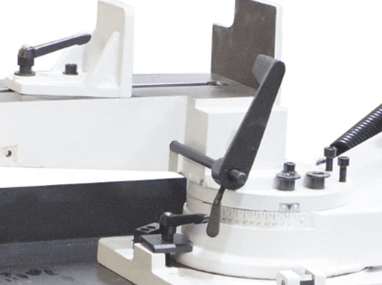 На станках с гидроразгрузкой управление и процесс резки (запуск пилы – опускание рамы – остановка пилы) происходит за счёт запуска двигателя и регулировки гидроцилиндра. Гидроцилиндр имеет переключатель вкл./выкл. гидравлической системы и плавную регулировку опускания рамы верхним маховиком на дроссельном клапане.